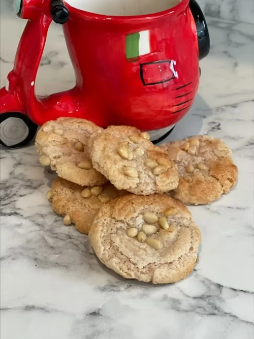 This soft and chewy almond-flavored cookie has a crispier exterior that’s covered in toasted pine nuts.